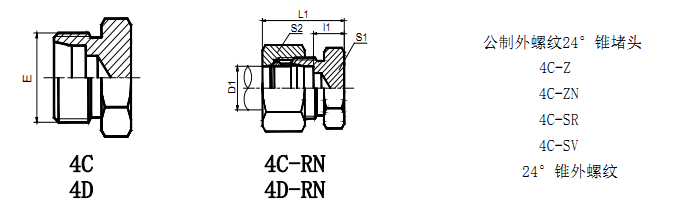 【4CQJ/4DQJ】公制外螺紋24°錐堵頭
