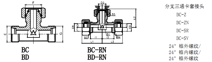 【BCQJ/BDQJ】24°錐外/內(nèi)/外螺紋分支三通